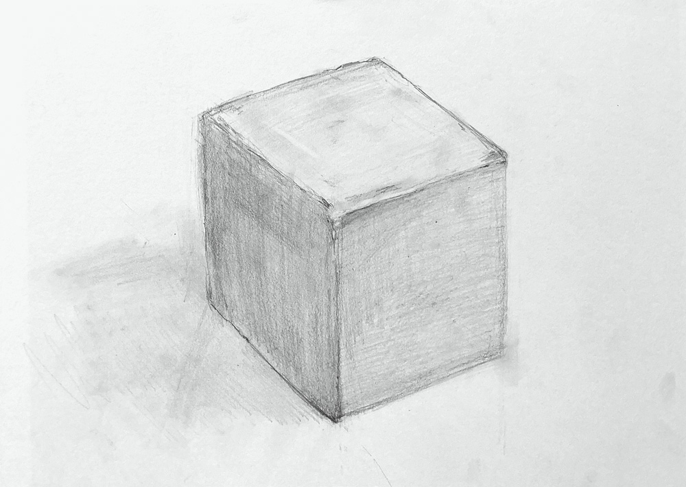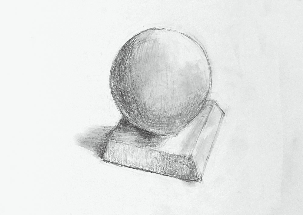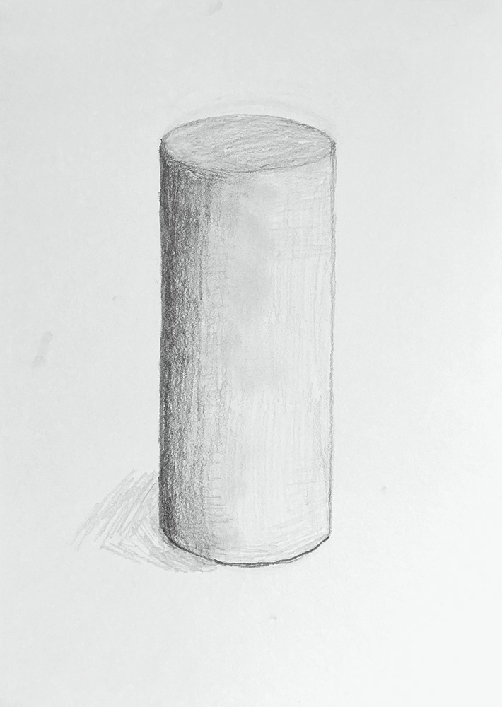 掲載画像、1枚目のデッサンは、テーブルの上に発泡スチロールのブロックを設置して、その中央にトイレットペーパーを置くという、シンプルですが、ちょっとでも形が狂うととても目立ってしまうモチーフです。3時間かけて、徹底的に形を直しながら描きました。