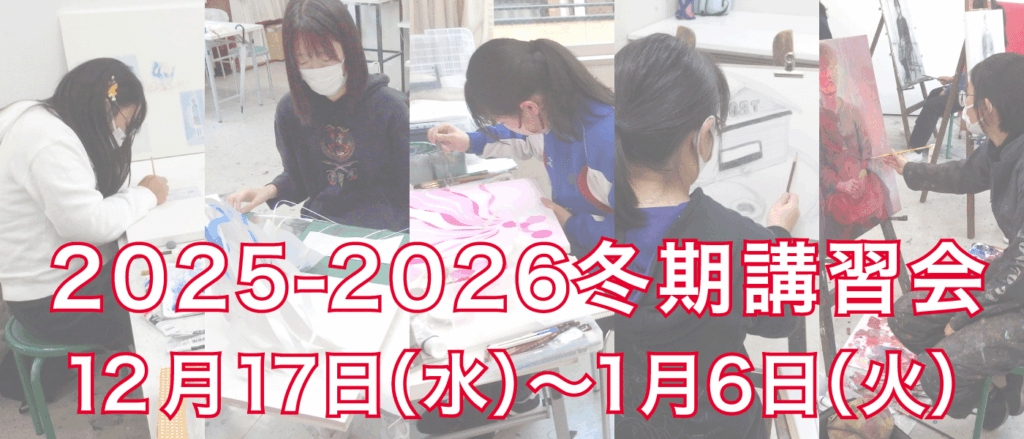 「2025-2026冬期講習会」の情報をホームページに掲載しました。年が明ければ、各美術大学の一般選抜試験や美術系高校の入試は目の前です。ここで集中して実技に取り組むことで、それぞれの夢の実現に向けて歩んでいってほしいと思います。